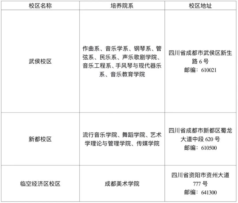 1.报考我校的考生只能选择“四川音乐学院”报考点,报考点代码5128。本报考点考区设置详见考点公告。