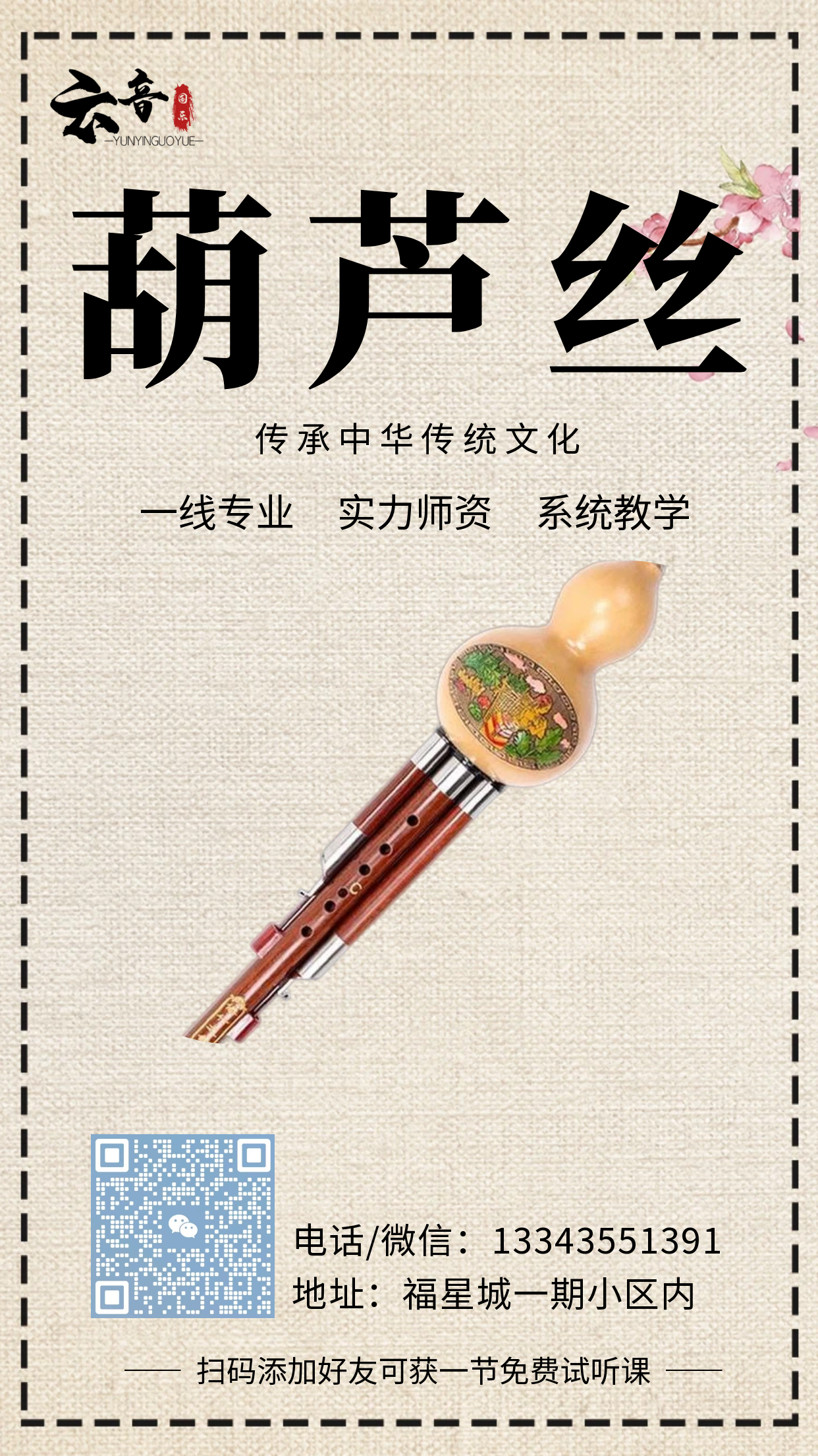 云音国乐专注民族乐器培训、乐器销售,开设古筝、古琴、竹笛、洞箫、葫芦丝等课程,资深专业院校老师授课。